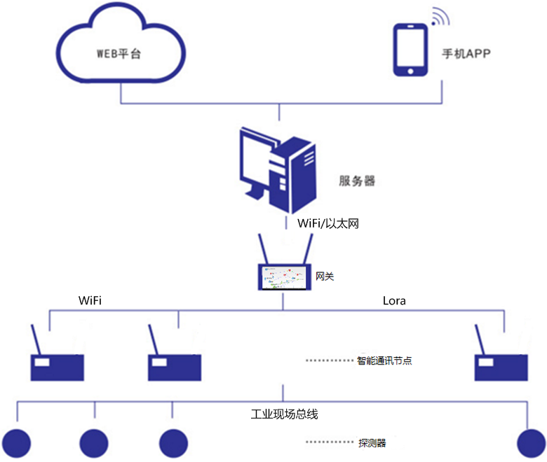 由空氣質(zhì)量傳感器、粉塵傳感器、噪音傳感器、智能通信節(jié)點等組成,具有空氣質(zhì)量監(jiān)測、揚塵監(jiān)測、噪音監(jiān)測功能。智能通信節(jié)點與網(wǎng)關互聯(lián)互通,上報環(huán)境監(jiān)測數(shù)據(jù),通過網(wǎng)關發(fā)布到云平臺展示。