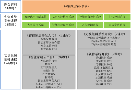 (5) 實驗體系:包含完整的Android、Linux兩大實驗體系,以智能家居實訓系統(tǒng)為基礎,包含多個智能家居子系統(tǒng)案例。