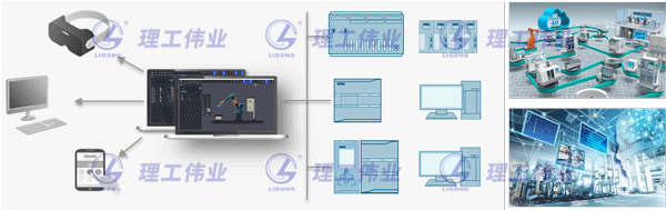 配合IMT虛擬仿真按照實(shí)驗(yàn)室已有的真實(shí)化產(chǎn)線可1:1搭建虛擬化系統(tǒng),并配套完整的從認(rèn)知到產(chǎn)線應(yīng)用的階段化開發(fā)課程資源,全面詳細(xì)的介紹了數(shù)字化產(chǎn)線構(gòu)成以及集成方式,并通過虛擬仿真技術(shù)創(chuàng)建與真實(shí)完全一致的虛擬產(chǎn)線,直接進(jìn)行虛擬仿真調(diào)試。特色在于,通過將PLC、工業(yè)機(jī)器人、計(jì)算機(jī)軟件控制技術(shù)結(jié)合,分單元分層講解數(shù)字化產(chǎn)線的各個(gè)層級個(gè)功能的實(shí)施及編程控制方法,并能夠以虛擬仿真加以展示及實(shí)現(xiàn)。