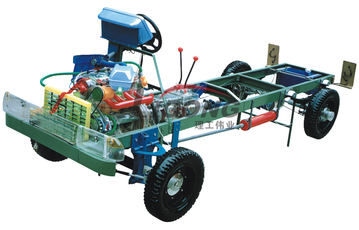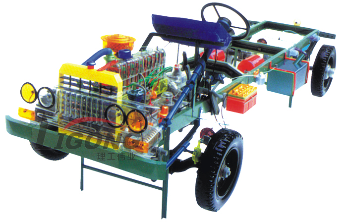 透明汽車整車模型選用透明有機玻璃制作,內中部件均以硬質塑料料加工,用 螺絲固定在金屬高溫烘漆而成的車架上。各總成部分都以壓模成形加 工,代替過去膠粘合的方法,使產品在強度上有很大提高。發(fā)動機總成用電機驅動,在油門處設有調速裝置,能演示發(fā)動機轉速高低。離合器分離明顯,操縱靈活,離合器外殼整體壓模而成,變速箱和各檔齒輪用各種顏色表示,換檔靈活,手制動美觀。后橋外形壓模而成,內中主減速、差速轉動自如,輪轂剎蹄壓模成型,剎蹄可調節(jié),前橋輪鼓可調整,轉向裝置以及電瓶、油箱、水箱,制動管路分布清楚一目了然。電路采用對插件前后分布,燈架、風窗、儀表板、后燈架用透明有機玻璃壓模成整體美觀逼真。