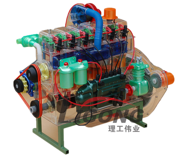 透明發(fā)動(dòng)機(jī)模型外殼選用透明有機(jī)玻璃制作,內(nèi)部部件均以硬質(zhì)塑料料加工,用螺絲固定在金屬高溫烘漆而成的鐵架子上??偝刹糠侄家詨耗3尚渭庸?,代替過去膠粘合的方法,使產(chǎn)品在強(qiáng)度上有很大提高。發(fā)動(dòng)機(jī)總成模型用直流電機(jī)驅(qū)動(dòng),能演示發(fā)動(dòng)機(jī)內(nèi)部曲軸、活塞、氣門等運(yùn)行情況,點(diǎn)火系統(tǒng)采用燈光演示,能根據(jù)實(shí)際發(fā)動(dòng)機(jī)運(yùn)行時(shí)的點(diǎn)火順序進(jìn)行演示。