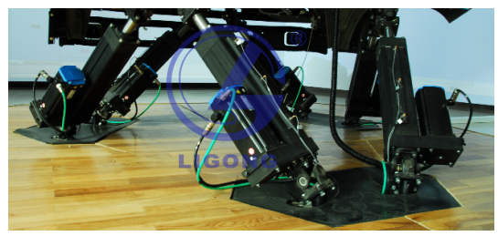 6自由度伺服電機(jī)控制電缸動(dòng)感平臺(tái),可實(shí)現(xiàn)前后、左右、上下三個(gè)方向的動(dòng)態(tài)運(yùn)動(dòng)。伺服電動(dòng)缸行程:200mm,前后傾角30º,左右傾角30º,水平轉(zhuǎn)角30º。承重:1000KG;總重250KG。采用高速六自由度反解算法,快速響應(yīng)飛機(jī)的動(dòng)態(tài),達(dá)到與畫面完全同步的動(dòng)態(tài)效果。