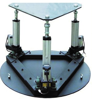 LG-JT型動(dòng)感交通安全體驗(yàn)駕駛模擬器設(shè)備由模擬駕駛艙、視景模擬駕駛軟件、數(shù)據(jù)采集系統(tǒng)、三自由度平臺(tái)系統(tǒng)由Stewart機(jī)構(gòu)的三自由度運(yùn)動(dòng)平臺(tái)、計(jì)算機(jī)控制系統(tǒng)、驅(qū)動(dòng)系統(tǒng)等組成(如下圖)。下平臺(tái)安裝在地面的固定基座基上,上平臺(tái)為支撐平臺(tái)。計(jì)算機(jī)控制系統(tǒng)通過協(xié)調(diào)控制電動(dòng)缸的行程,實(shí)現(xiàn)運(yùn)動(dòng)平臺(tái)的三個(gè)自由度的運(yùn)動(dòng)。