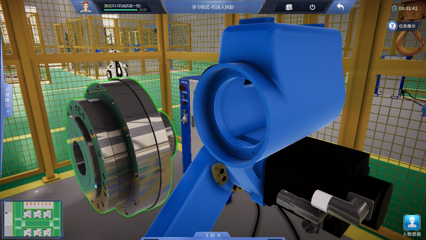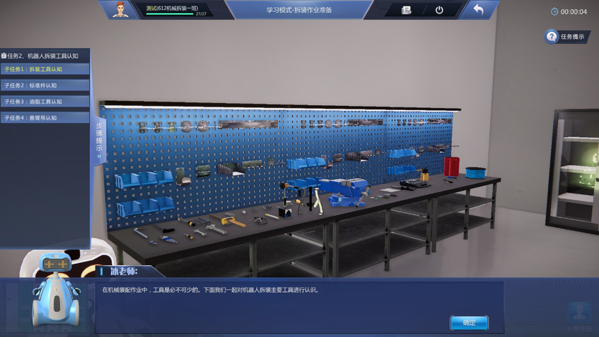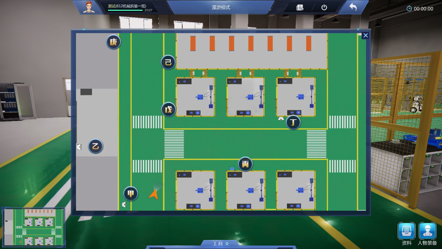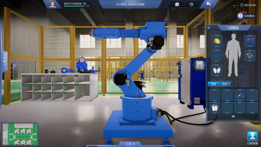 9、友好操作體驗(yàn)設(shè)計(jì):設(shè)置專用工具欄,可以通過工具欄中的快捷鍵快速選擇工具,提高實(shí)訓(xùn)系統(tǒng)使用效率,同時(shí)加深對工具的認(rèn)識(shí)。地圖及快速跳轉(zhuǎn)、箭頭指示多形式導(dǎo)航,通過小地圖實(shí)現(xiàn)快速跳轉(zhuǎn)到機(jī)器人NPC獲得指引。地標(biāo)指引箭頭,有效提示下一任務(wù)的操作位置。