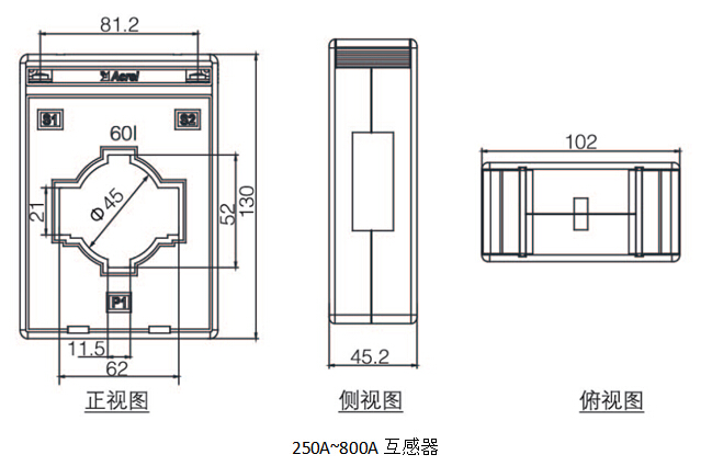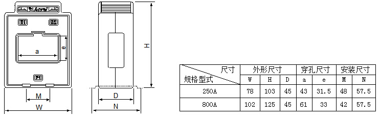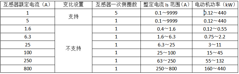 注:>250kW的低壓電動機(jī),額定電流小于800A時均可選用800A等級的電動機(jī)保護(hù)器。