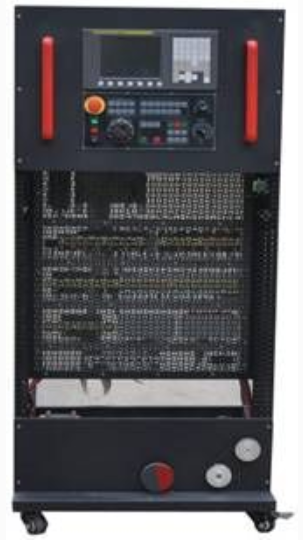 4、柜體背面為多功能網(wǎng)孔板式電氣安裝板,上面裝有變頻器、伺服驅(qū)動(dòng)器、交流接觸器、繼電器、保險(xiǎn)絲座、斷路器、開關(guān)電源、接線端子排和走線槽等;電器排布與選型完全按照現(xiàn)行的數(shù)控機(jī)床一致模式。