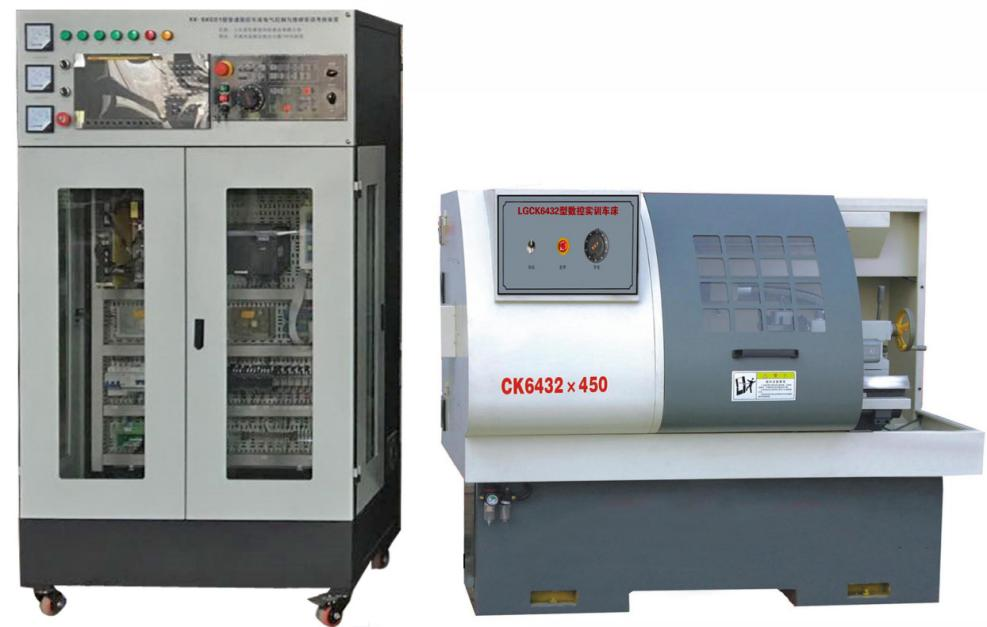 數(shù)控車床電氣控制與維修實(shí)訓(xùn)考核裝置配有:工業(yè)CK6432數(shù)控車床1臺(tái)、FANUC 0I TF數(shù)控系統(tǒng)1臺(tái)、四工位電動(dòng)刀架1臺(tái)、主軸電機(jī)與編碼器1套、冷卻泵1臺(tái)、BIS4 和BIS8伺服電機(jī)各1臺(tái)、及X、Z限位開關(guān)和機(jī)床零點(diǎn)、潤(rùn)滑系統(tǒng)、三色報(bào)警燈等。