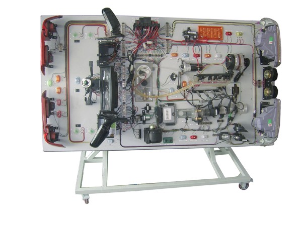 外形尺寸:1500*600*2000mm 組成:燈光系統(tǒng)元器件、組合儀表及移動式滾輪臺架。 1.帶燈光系統(tǒng)電路圖面板,平面布置各個元器件,使燈光系統(tǒng)清楚可見。 2.面板帶檢測端子...LG-DL2000型 桑塔納2000型仿真電噴電路、智能故障實(shí)驗(yàn)臺(立式)