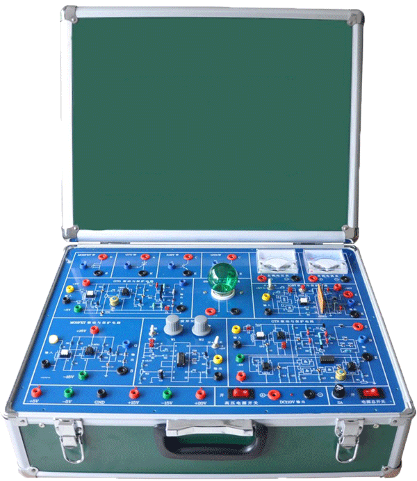 電力電子試驗分布有新器件的驅(qū)動與保護電路,由SG3525構(gòu)成的PWM波形發(fā)生器電路,直流電壓表(0~150V),直流電流表(0~2A),以及頻率與占空比調(diào)節(jié)電位器,接插件的測試點也分布在面板上,便于學(xué)生接線測試。