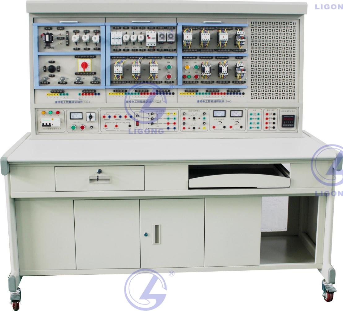 LGWX-082型 中級維修電工實訓考核裝置采用國際常用的模塊化設計,根據(jù)不同的實訓考核內(nèi)容配置相應的實訓模塊,實訓方便、布局合理、易于擴展升級,實訓內(nèi)容涵蓋電工儀表、電工接線工藝、電子電路、電工照明配電、電力拖動、PLC綜合訓練、觸電急救、安全消防等,符合初、中級電工國家職業(yè)標準教、培、考的要求,適應各職業(yè)學校、技工學校、中專學校、勞動培訓及技能鑒定機構等單位的教學培訓、實訓考核、技能鑒定。