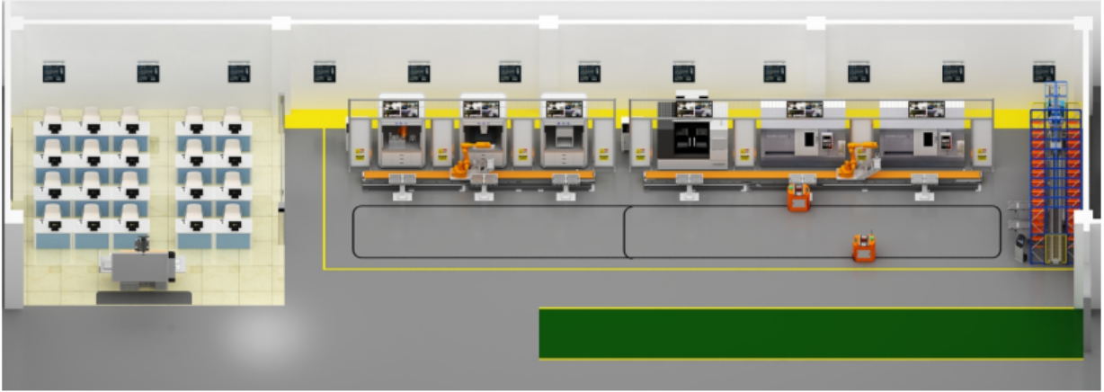 數(shù)字化協(xié)同制造與設(shè)計中心、數(shù)控機(jī)床加工制造單元及其自動化改造、自動化清洗單元、,自動化檢測單元、自動化裝配單元、自動化立體倉儲單元、多軸移動工業(yè)機(jī)器人上下料單元、AGV運載單元、監(jiān)控單元、系統(tǒng)中央控制單元
