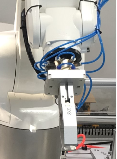 5、工業(yè)機(jī)器人末端安裝電磁吸盤,可匹配多種夾具。同時至少配備4種工裝夾具,夾具有專門的工具架安放,每個夾具的負(fù)重至少在3kg以上。按照實訓(xùn)項目的要求可分別配合工業(yè)機(jī)器人完成物料夾取、軌跡模擬、寫字繪圖等工作。