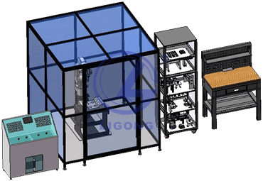 該裝備采用落地式的安裝形式,保證設(shè)備的穩(wěn)定可靠,同時(shí)采用多道防護(hù)裝置,包含了有機(jī)玻璃防護(hù)網(wǎng)、安全門(安全鎖)系統(tǒng)、安全光幕等硬件保護(hù)。