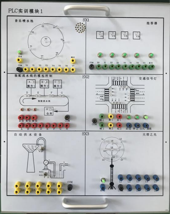 2、項(xiàng)目實(shí)訓(xùn)模塊:利用目前典型的可編程控制器及總線技術(shù)完成對工業(yè)生產(chǎn)中模擬對象,實(shí)物模型中的邏輯、模擬、過程、運(yùn)動(dòng)等的控制實(shí)訓(xùn),完成學(xué)生認(rèn)知、設(shè)計(jì)、安裝、調(diào)試、檢修等多種技能實(shí)訓(xùn)。