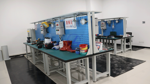 設備是由防爆柜、防靜電操作臺、防爆箱、防爆電阻箱、隔爆型防爆燈、增安型防爆燈、本安型防爆燈、防爆接線盒、防爆電動機、接地桶、密封圈、防火泥、防爆撓性管、封堵件、防爆電阻箱被測電流回路(防爆白熾燈,用硬導線連接)、防爆儀表(萬用表/防爆型、萬用表/普通型指針式、兆歐表500V/防爆型、兆歐表1000V/防爆型、兆歐表500V/普通型、兆歐表1000V/普通型、鉗形電表/防爆型、鉗形電表/普通型數(shù)字式、接地電阻測試儀/防爆型、接地電阻測試儀/普通型數(shù)字式)、防毒面具、防護眼鏡、安全帶、絕緣鞋、安全帽、攜帶式接地線、低壓驗電筆等組件構成。