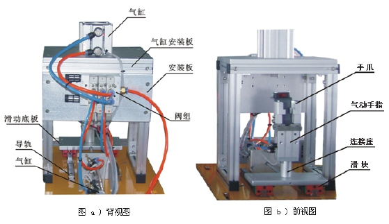 選用該裝置配置的單出桿氣缸、單出雙桿氣缸、旋轉(zhuǎn)氣缸等氣動(dòng)執(zhí)行元件和單控電磁換向閥、雙控電磁換向閥和磁性開(kāi)關(guān)等氣動(dòng)控制元件,可完成下列氣動(dòng)技術(shù)的工作任務(wù):
