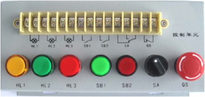 按鈕模塊:24 V/6 A、12 V/2 A各一組;急停按鈕1只,轉(zhuǎn)換開(kāi)關(guān)2只,蜂鳴器1只,復(fù)位按鈕黃、綠、紅各1只,自鎖按鈕黃、綠、紅各1只,24V指示燈黃、綠、紅各2只;