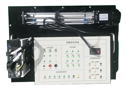 直線運(yùn)動(dòng)機(jī)械模組,行程300毫米,終端具有限位保護(hù)??蛇M(jìn)行位置、轉(zhuǎn)速檢測(cè),轉(zhuǎn)速檢測(cè)精度不少于每轉(zhuǎn)1000分辨率。模型使用了四個(gè)接近開關(guān),可以實(shí)現(xiàn)多種控制方式,可以是單一的正反轉(zhuǎn)、多種模式的自動(dòng)往返(加減速分段控制、脈沖模式控制、速度模式控制等)。