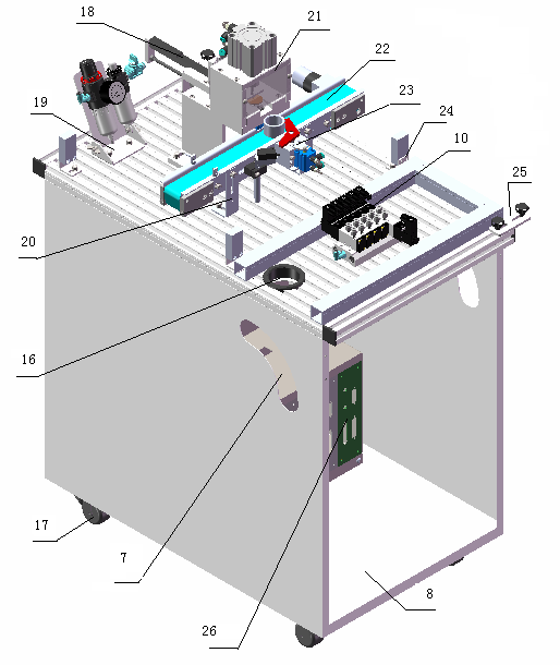 該系統(tǒng)的各站是安裝在帶槽的鋁型板上,各站可容易的連接在一起組成一條自動加工生產(chǎn)線。站內(nèi)由各種模塊化形式構(gòu)成,各模塊之間易于搭建、拆卸和維護,各工作站之間可隨意組合。