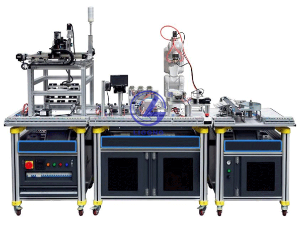 LGY-JD05型 通用機(jī)電設(shè)備安裝與調(diào)試實(shí)訓(xùn)裝備主要由實(shí)訓(xùn)臺(tái)架、典型的機(jī)電設(shè)備的機(jī)械部件, 電氣控制單元等組成。典型的機(jī)電設(shè)備的機(jī)械部件主要包括供料機(jī)構(gòu)、傳送帶輸送分揀機(jī)構(gòu)、工業(yè)機(jī)器人、直角坐標(biāo)機(jī)械手、立體倉(cāng)庫(kù)以及可擴(kuò)展的模擬生產(chǎn)設(shè)備實(shí)訓(xùn)模塊等; 電氣控制單元主要有電源配電、PLC 可編程控制器、觸摸屏、變頻器、步進(jìn)電機(jī)控制、伺服電機(jī)控制、按鈕指示燈、接線端子及各種檢測(cè)傳感器等部分組成。整體結(jié)構(gòu)采用開放式和拆裝式,可根據(jù)現(xiàn)有的機(jī)械部件,以模塊化的方式組裝和搭建具有生產(chǎn)功能的智能生產(chǎn)線設(shè)備,也可添加其它機(jī)械部件組裝其他生產(chǎn)設(shè)備,使整個(gè)裝置能夠靈活的按教學(xué)實(shí)訓(xùn)要求組裝具有模擬生產(chǎn)功能的智能生產(chǎn)線設(shè)備。