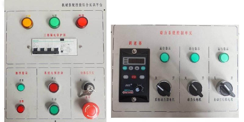 (2)三相電源指示(U 相、V 相、W 相)由 3 個不同顏色的指示燈組成,實時監(jiān)測實訓平臺三相交流電源,正常通電情況下三個指 示燈都是點亮的。