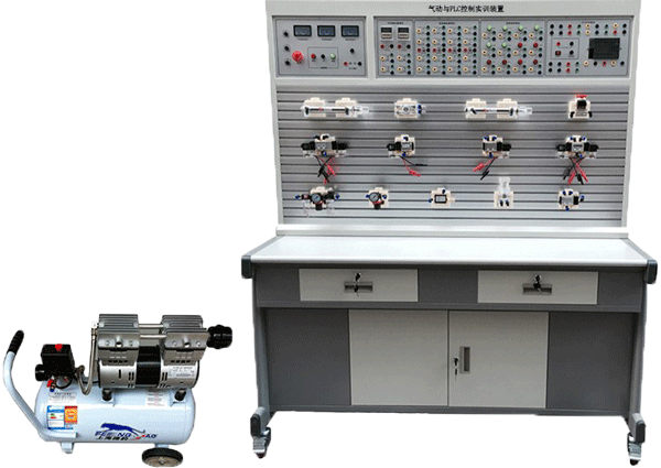 1、氣動與PLC實訓(xùn)裝置主要由實訓(xùn)桌及實訓(xùn)臺、氣動元件和電氣控制器件、可編程控制器(PLC)等組件組成。