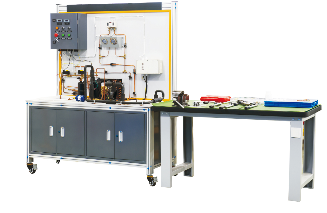 該裝置基于世界技能大賽的基本要求,著重提高學(xué)員的職業(yè)素養(yǎng),提供一個(gè)實(shí)訓(xùn)平臺,由學(xué)生進(jìn)行制冷系統(tǒng)的基本設(shè)計(jì)、安裝、調(diào)試及維修等實(shí)訓(xùn)。該裝置能全面的實(shí)訓(xùn)學(xué)生的綜合能力,其技能包括:系統(tǒng)設(shè)計(jì)技能,管工技能,焊工技能,電工技能,壓力測試、抽真空、真空測試、制冷劑測試及加注、電氣測試技能、制冷設(shè)備調(diào)試技能。還包括了制冷系統(tǒng)調(diào)試運(yùn)行的全部步驟,能滿足實(shí)訓(xùn)教學(xué)、實(shí)際工程訓(xùn)練及職業(yè)技能競賽的要求。