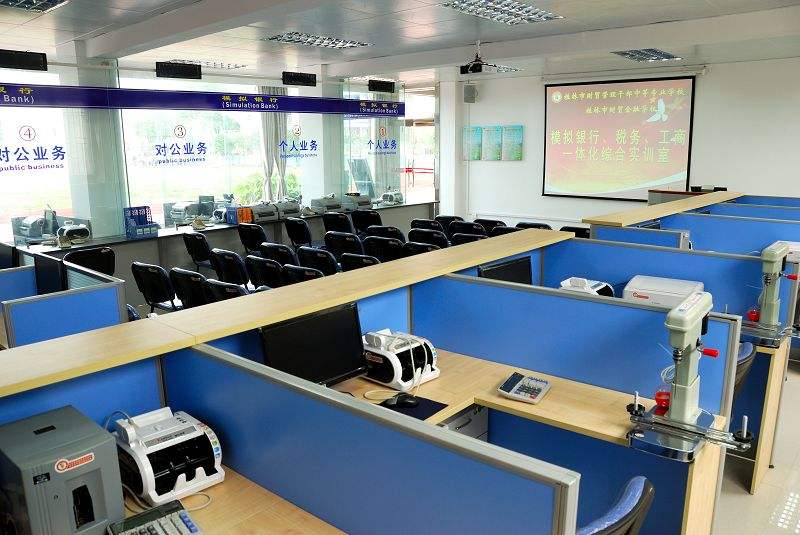 在以往的職業(yè)教育過(guò)程中,一般分為課堂教學(xué)和畢業(yè)前的頂崗實(shí)習(xí)兩個(gè)階段,忽略了專業(yè)理論知識(shí)與專業(yè)技能的綜合運(yùn)用、各種專業(yè)專項(xiàng)技能的綜合運(yùn)用,以及專業(yè)核心能力與關(guān)鍵能力的綜合運(yùn)用,導(dǎo)致課堂教學(xué)和頂崗實(shí)習(xí)相脫節(jié),學(xué)生不能迅速適應(yīng)實(shí)習(xí)崗位,直接影響到學(xué)生就業(yè)。經(jīng)過(guò)對(duì)職業(yè)教育實(shí)踐教學(xué)體系的研究與實(shí)踐,我們組建了模擬銀行綜合實(shí)訓(xùn)室,較好解決了上述問(wèn)題。