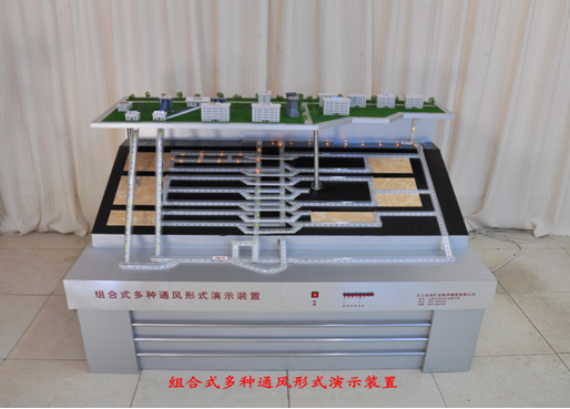 該煤礦礦井通風(fēng)綜合演示裝置(適合于二、三、四級),由井上下兩部分構(gòu)成,地面示意現(xiàn)代化礦井的工業(yè)廣場;井下利用發(fā)光管直觀顯示U+L、U、W、Y、雙Z型、Z型等多種采煤工作面的通風(fēng)型式。使學(xué)員進(jìn)一步了解各種采煤工作面的通風(fēng)及安全設(shè)施。