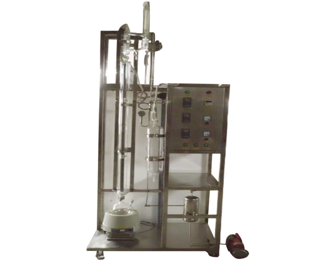 1.精餾塔塔徑φ25mm,塔高1400mm,材質(zhì)為玻璃塔結(jié)構(gòu),塔內(nèi)填裝φ3x 3 mm不銹鋼θ網(wǎng)環(huán)型填料。塔釜為三口燒瓶帶導(dǎo)電膜保溫,保溫段加熱功率上下兩段各300W;塔釜容積:500ml;聯(lián)接方式:直磨口。