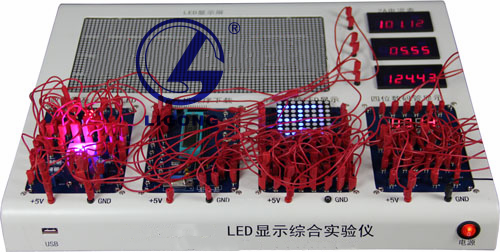 隨著社會的不斷進步,半導體行業(yè)迅猛發(fā)展,LED作為其中的一款產(chǎn)品,迅速出現(xiàn)在街頭巷尾:家用節(jié)能燈,LED電視,小店鋪商用廣告牌,購物商場大屏顯示等等,各種新產(chǎn)品層出不窮。本款儀器涉及LED的多種應用:靜態(tài)顯示,動態(tài)顯示,單色顯示,雙色顯示,三基色原理,LED點陣,LED廣告牌,LED燈演示音頻解碼,通過該產(chǎn)品,學生可以加強動手能力,在理解原理的基礎上,由一個單元板設計任意長度的LED點陣屏。為想要從事LED設計行業(yè)的學生走向社會打下堅實的基礎。
